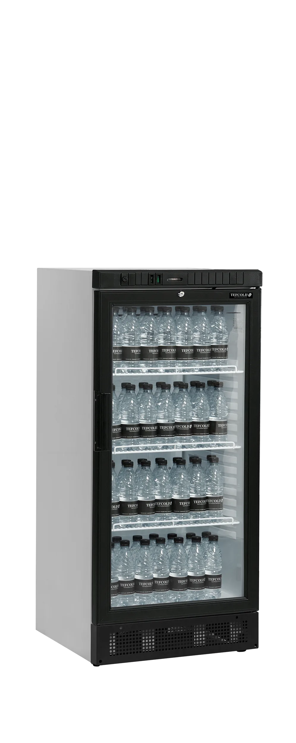 De SCU-serie flessenkoelers biedt veel display- en opslagruimte. Leverbaar in verschillende hoogtes, met of zonder kap. Het is een witte kast met een zwarte omkeerbare glazen deur met aluminium frame, verstelbare leggers en ledverlichting binnenin voor een optimale productpresentatie. Een koelsysteem met ventilator zorgt voor een gelijkmatige koeling van de hele flessenkoeler.