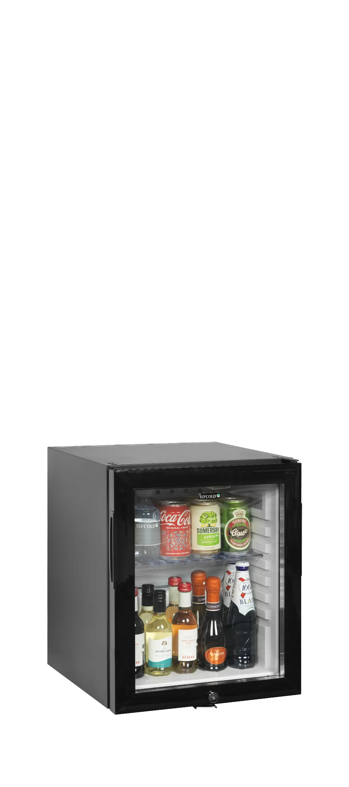 Koelsysteem met compressor|Uitstekende productpresentatie|Laag energieverbruik|Geluidsarme werking|Timer voor maximaal comfort voor gasten|SLEEP-modus voor stille periode|FAST-koelfunctie voor onmiddellijk koelen|Omkeerbare glazen deur|LED-binnenverlichting|Ingebouwde greep|Slot