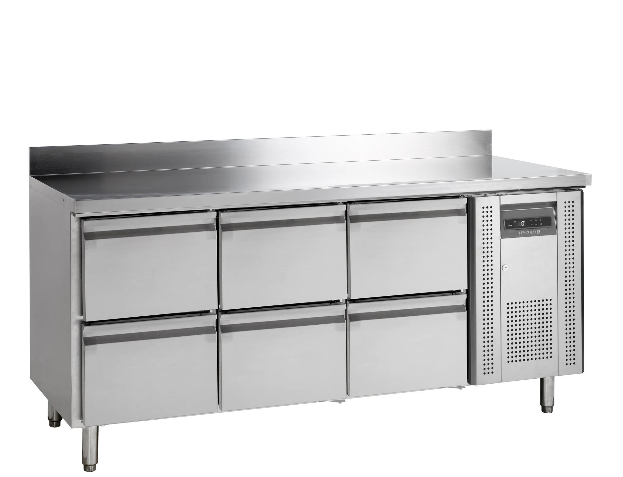 Roestvrij staal|Automatisch ontdooien|Afneembaar werkblad met achterwand|GN1/1 lade(n)|Instelbare rooster GN 1/1|Stelpoten|Geventileerde koeling