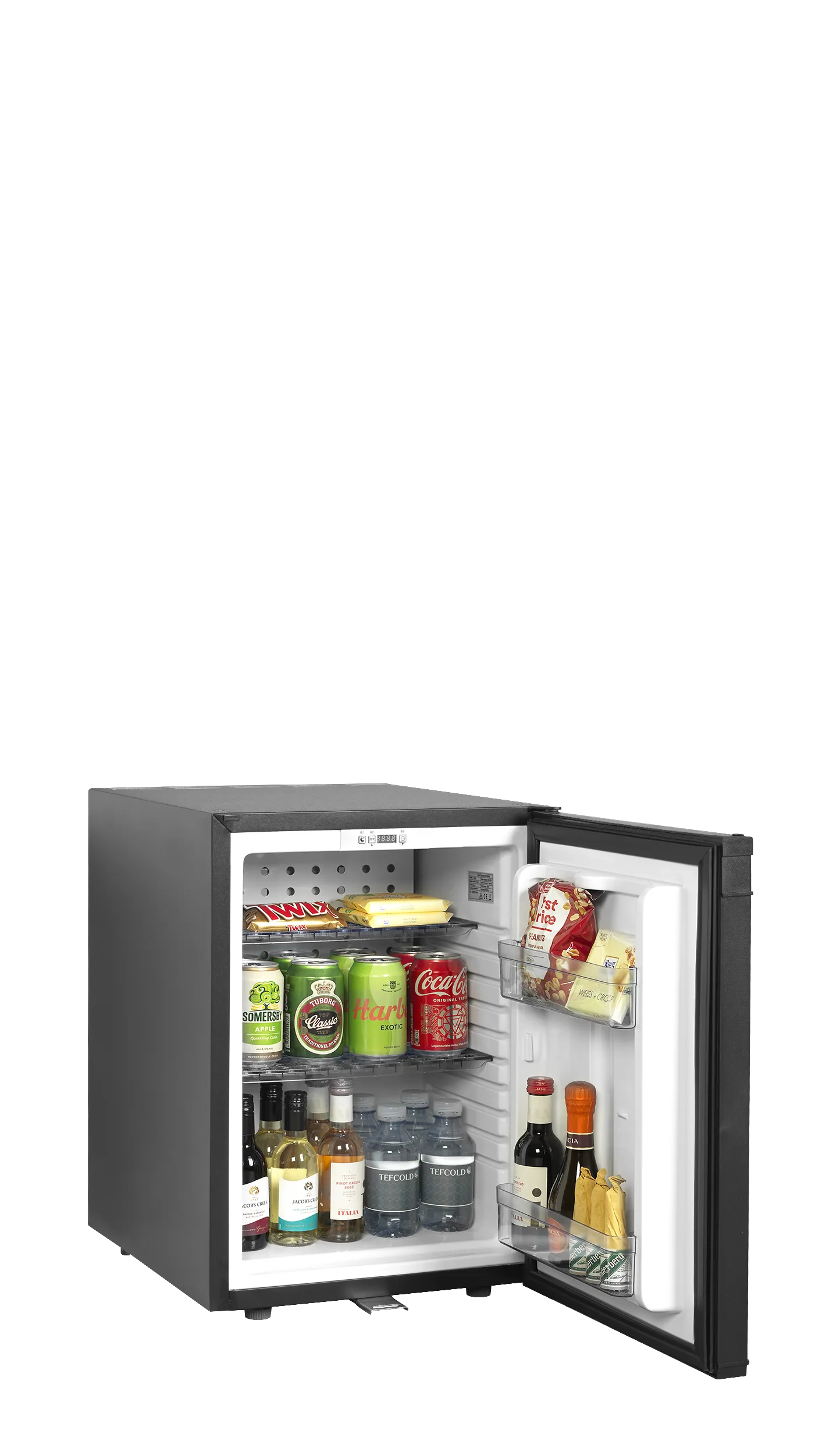 De TM-serie minibars met compressorbediening is een uitstekende keuze voor hotelkamers. Met een geluidsarm systeem dat kan worden getimed om alleen te draaien als de kamer waarschijnlijk leeg is. Ook met een SLEEP-modus voor geforceerde stilte en een FAST-cool-functie voor onmiddellijke koeling. Er zijn modellen in verschillende afmetingen met een volle of glazen deur.