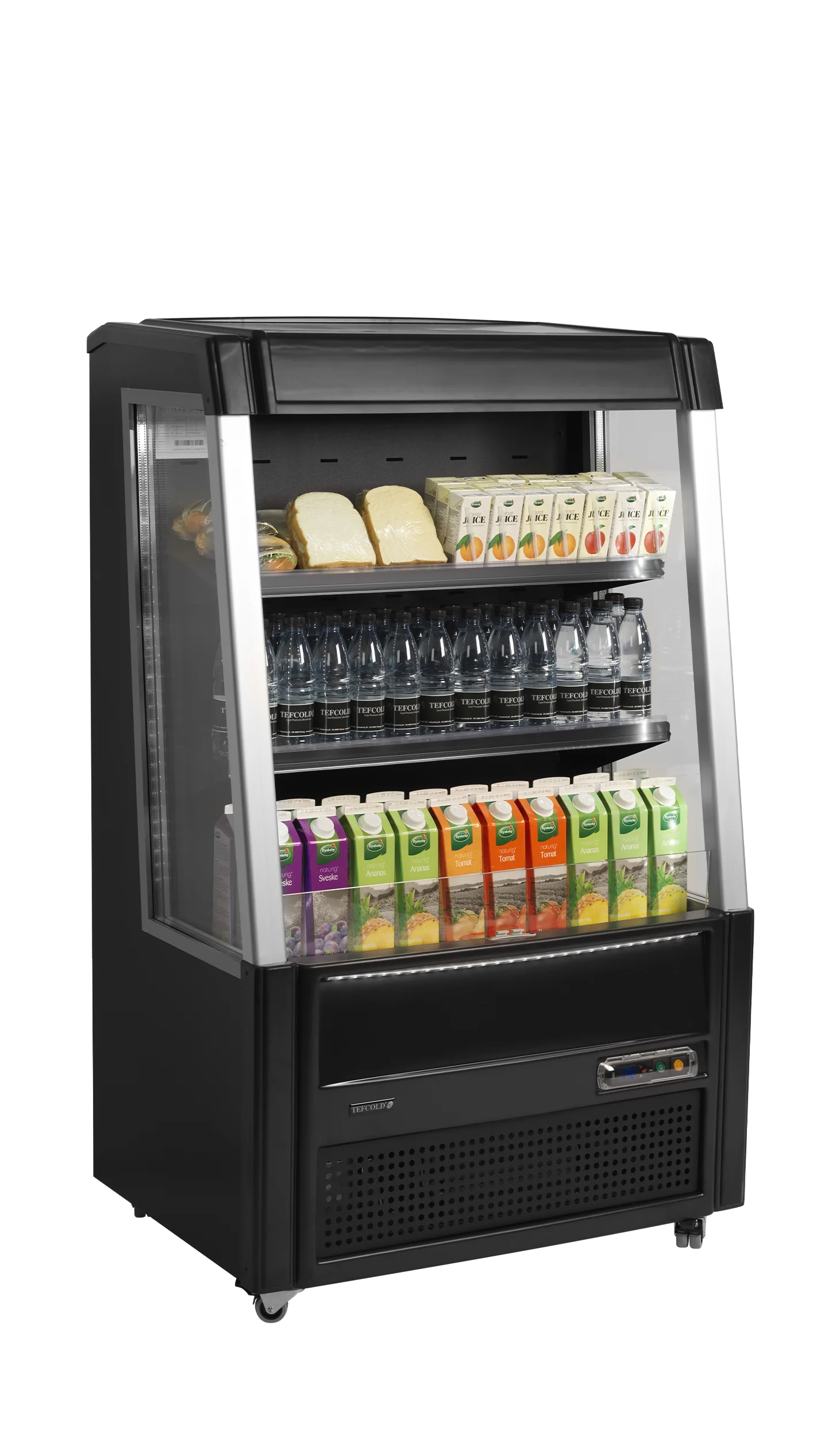 Ideaal voor impulsverkopen bij de kassa.|Geventileerde koeling|Nachtblindering / gordijn met soft release|Instelbare roosters met kantelfunctie|LED-binnenverlichting|Zwarte buitenkant