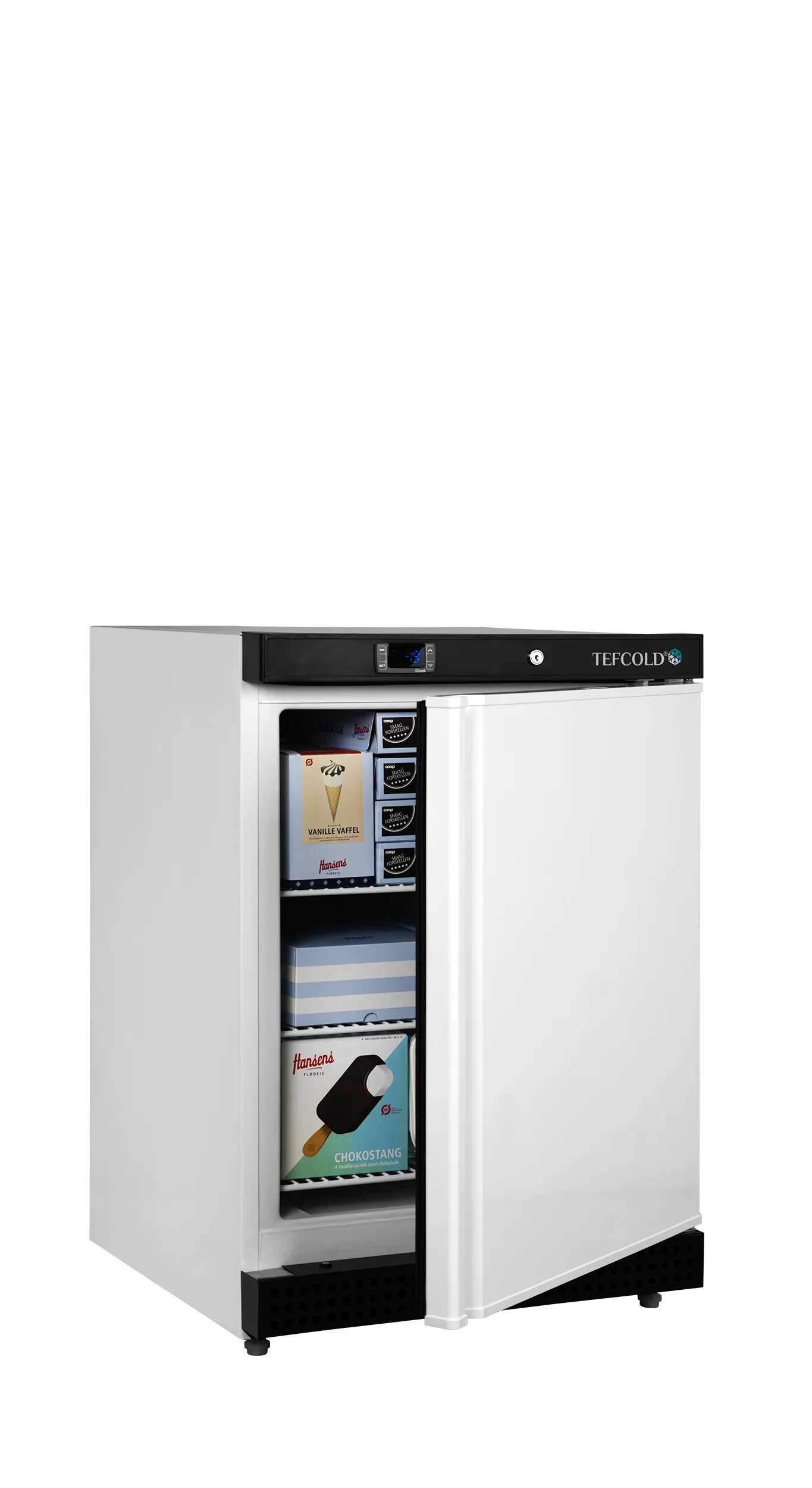 De UF-V-serie opslagvriezers is leverbaar in verschillende maten. De vriezer heeft een effectief geventileerd koelsysteem, dat zorgt voor een gelijkmatige temperatuur in de hele opslagvriezer. Stel de temperatuur in op het gebruiksvriendelijke digitale thermostaatdisplay. U kunt de vriezer aanpassen aan uw behoeften met verstelbare leggers. Ontdooien gaat automatisch.