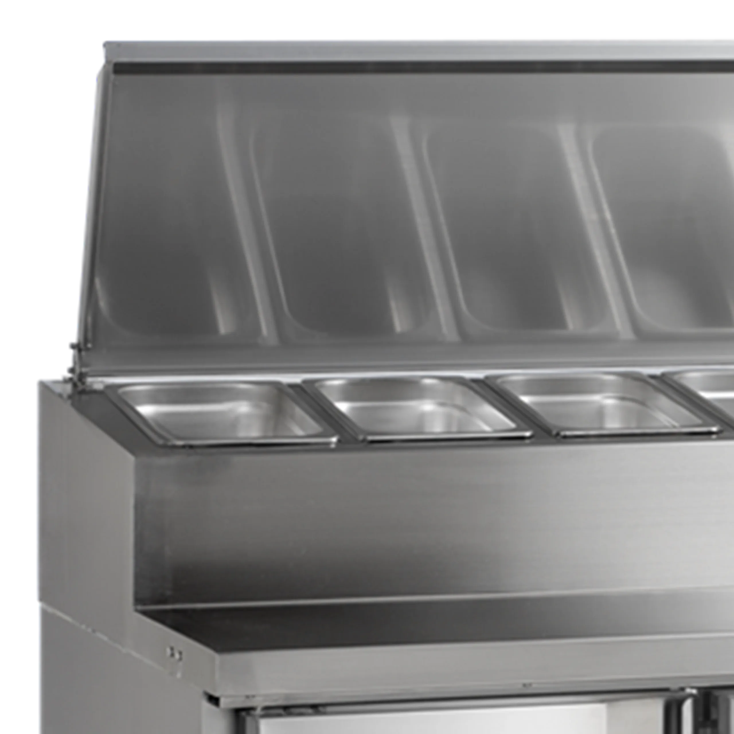 De SS-serie counters voor broodjesbereiding zijn gemaakt van roestvast staal SS304 en is een uitstekende keuze voor professionele keukens. U hebt hier alles wat u nodig hebt, onder handbereik. De koelbak is geschikt voor GN-bakken en de kasten kunnen gemakkelijk worden bijgevuld. De counters zijn leverbaar in diverse afmetingen met 2 of 3 deuren.
