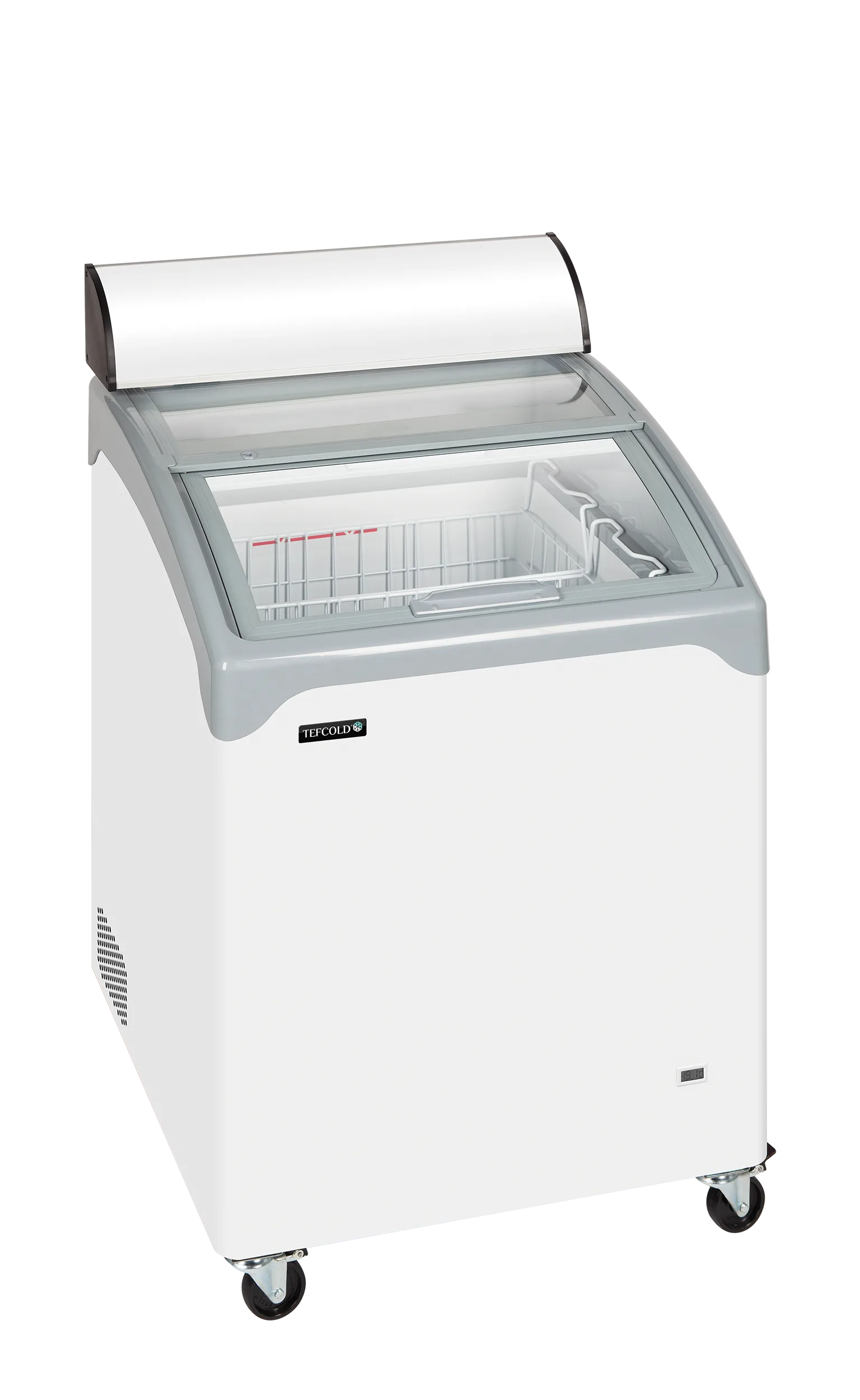 De NIC-serie premium consumptie-ijsvriezers heeft een prachtig ontwerp met gebogen hoeken, afgeronde randen en gebogen glazen schuifdeksels. Ze zijn stabiel en robuust, maar hebben wel wieltjes voor een gemakkelijke verplaatsbaarheid in de winkel. De vriezer is geweldig voor het presenteren van diepvriesproducten zoals ijs en ijslolly’s.
