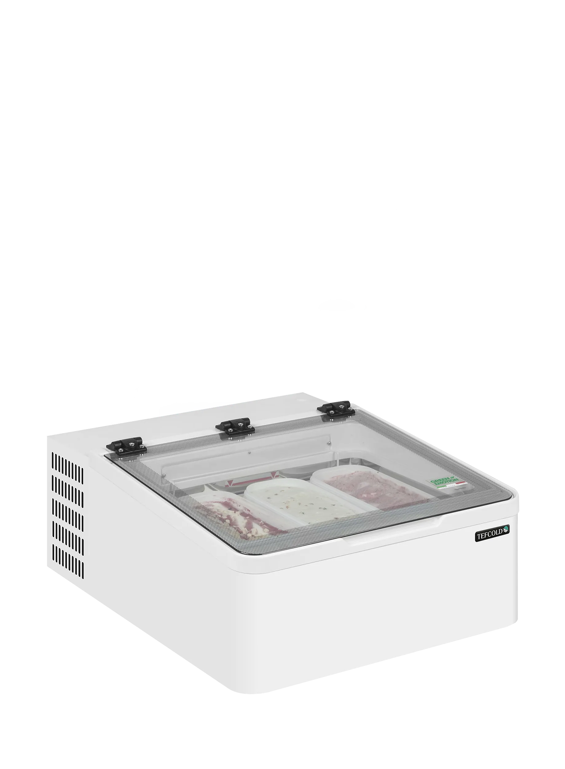 De ICE-serie is perfect voor bedrijven met beperkte ruimte, die toch zo veel mogelijk schepijs willen verkopen. De ICE is ontworpen voor plaatsing op een countertop en is verkrijgbaar in een model voor 2 of 3 napoli-pannen. Hij kan zowel voor als achter de schermen worden gebruikt, zodat populaire ijssmaken snel en efficiënt kunnen worden geserveerd.