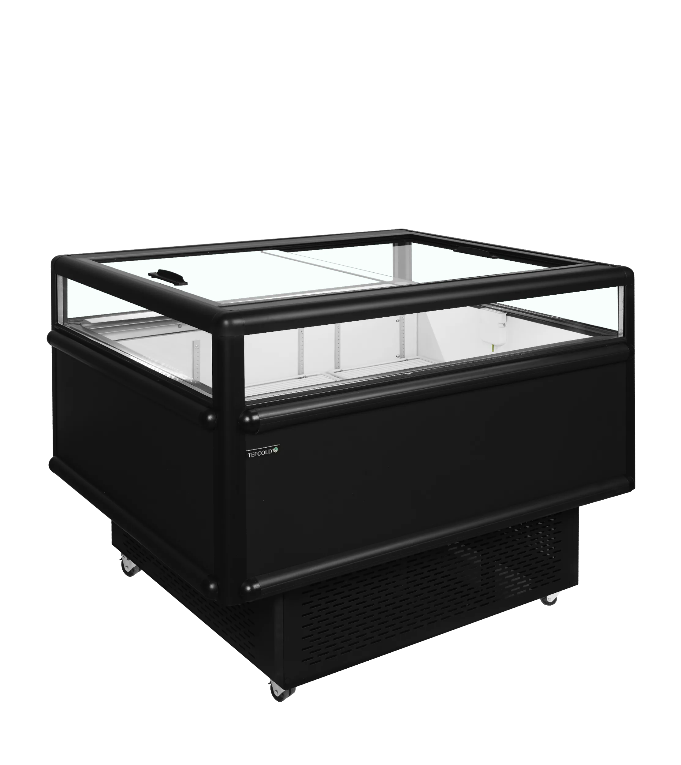 Vriezer / koeler|Ideaal voor impulsaankopen|Glazen schuifdeksels|Glazen zijkanten voor betere presentatie van producten|Enorme opslagruimte|Geventileerde koeling|Zwenkwielen met rem|Stootstaven aan 4 zijden